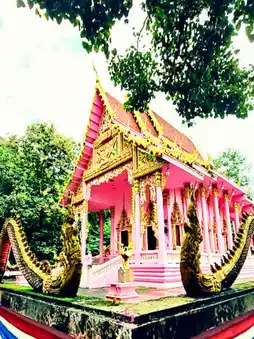 🌼Wat Khao Thurian in Nakhon Nayok is uniquely characterized by the sweet pink color of the entire temple, including the ubosot (ordination hall), viharn (viharn), and pavilion, contrasting perfectly with the green of the Naga serpents enclosing the walls. Paying homage to the Buddha here offers both peace of mind and a unique beauty. Inside the ubosot (ordination hall), there's a principal Buddha image resembling the Phra Buddha Chinnarat. The magnificent Naga staircase is a highlight, as well as the shrine to Chao Pho Muen So, revered by locals. Located on a small hill, the temple offers a shady atmosphere, perfect for those seeking merit-making and worship. The temple also offers a beautiful, pink architecture, boasting a history spanning over 200 years. This temple is a must-see when visiting Nakhon Nayok.