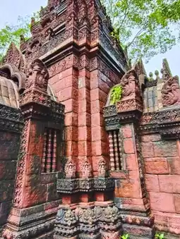 🌻Wat Kiriwan in Nakhon Nayok Province is a striking and enchanting temple with its exquisite ancient Khmer architecture, reminiscent of a large stone castle. It attracts both pilgrims and photographers alike. Nestled amidst lush mountain scenery, the temple offers a tranquil atmosphere, perfect for a relaxing retreat. A must-see highlight is paying homage to the 1,000-year-old Luang Pho Pho, a reclining Buddha image carved from an ancient Bodhi tree. It's enshrined in a large Khmer-style temple vihara, believed to be sacred and highly auspicious. It's a popular spot for making offerings and praying.