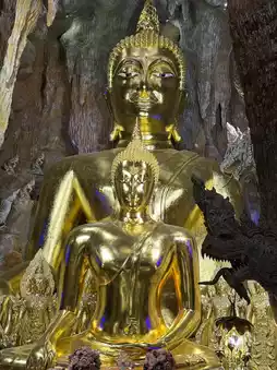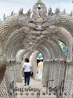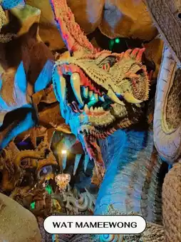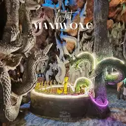 Wat Mani Wong, Nakhon Nayok Province ✨ A renowned temple distinguished by its magnificent "Naga Cave" and "Mani Lok Mountain." The interior is adorned with exquisite and intricate art, filled with shimmering golden lights and lifelike Naga patterns. The atmosphere is both sacred and mysterious. Visitors flock here to pay homage to "Luang Por Phra Maha Heng" and to pray for blessings in fortune, career, and success. Outside, there is a grand Naga courtyard perfect for taking stunning photos, as if stepping into a fantastical world. This temple combines beauty, faith, and sanctity all in one place. 💚🐍