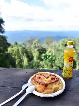 Omelet rice for just ten baht with a million-dollar view at "Pha Trom Jai" (Fried Egg Rice), Khao Yai.