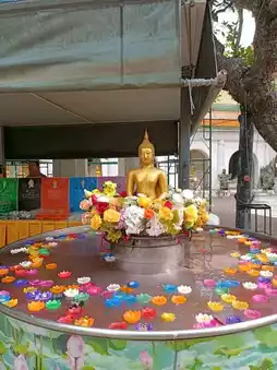 🍥At the entrance, there is Phra Ruang Rojanarit for worship. There are flowers, incense, and candles to worship according to your faith.
