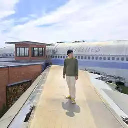 taking pictures on the wings of airplanes in the cafe zone