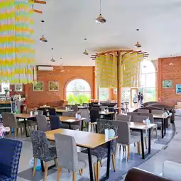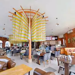 Here, it serves a variety of food, drinks, desserts, and bakery