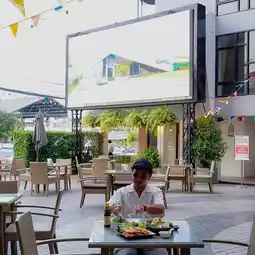 There is an outdoor area. In the evening, there is live music