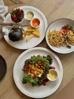 #GetDiscountsWithoutLuck A cafe in Nakhon Pathom with a very shady atmosphere. There is a stream flowing through the middle of the shop, making you feel relaxed. It is very suitable for sitting and relaxing. Inside the shop, there are both full-fledged food and drinks. There are also animal feeding activities. It is a cafe with a fairly large area. There are many photo spots. You can walk around and take pictures happily. The shop is located in Nakhon Pathom. It is a cafe near Bangkok that is worth visiting. #Cafe #Must-VisitCafe #NakhonPathomCafe #NakhonPathom
