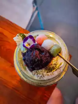 They also offer homemade Japanese-style desserts like mochi, croffles, and soft cheesecake.