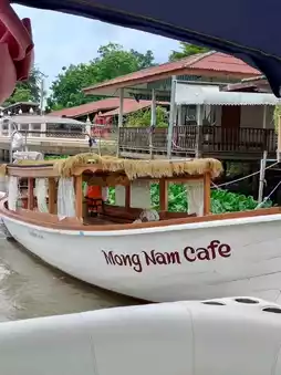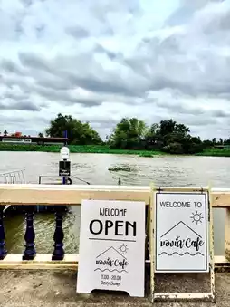 If you're looking for a relaxing place to fill your day with a relaxing spirit, "Mong Nam Cafe" is the answer. 💚 This restaurant and cafe boasts a beautiful atmosphere, located along the Nakhon Chai Si River, surrounded by lush greenery. It's sure to invigorate you from the moment you step inside. 🛥️