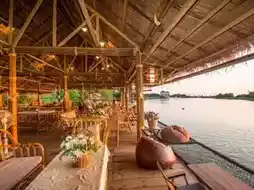 #GetDiscountsWithoutLuck Enjoy a romantic evening at a riverside cafe in Nakhon Pathom on a raft with a beautiful atmosphere and beautiful views. Ruk Num Cafe' is located in Nakhon Pathom, not Kanchanaburi. Dine and enjoy the riverside view, and the view is truly chill.