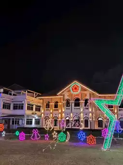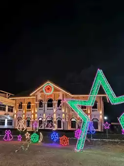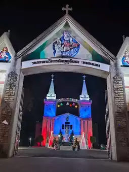It is a church located on the banks of the Mekong River. It is in the same area as St. Joseph Nakhon Phanom School, which used to be called Santyanan School. But before that, I remember that it taught from kindergarten to junior high school. During Christmas, there are decorations and lights in front of the church and various points in the temple. There is also a Christmas star parade tradition that will be held on December 25. If anyone misses the actual parade day, there will be a parade float parked in front of the church for tourists to enjoy. The decorations in front of the church will be until mid-January. Nong Saeng St. Anne Cathedral In the evening, the weather is cool to cold. It is recommended to wear a sweater. Taking pictures is very beautiful, especially at night when there are not many people. The highlight here is the lights hanging from the large trees. Taking portrait photos is great.