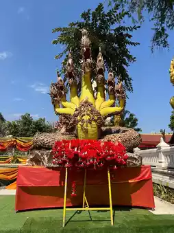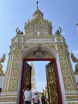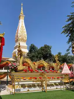 Phra That Phanom is considered the birth year pagoda for those born in the year of the monkey and the birth day pagoda for those born on Sunday. According to legend, the creator was Phra Maha Kassapa, one of 500 Arahants, and it was elevated to a private royal temple and its name was changed to Wat Phra That Phanom Woramahawihan. On 11/08/2518 at 19:38, Phra That Phanom collapsed due to its old age and continuous strong winds and rain for several days. People from all over the country donated money and the government rebuilt the pagoda in its original form. According to the information, the top of the pagoda is a golden umbrella weighing 110 kilograms and decorated with beautiful gems.