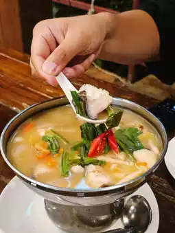 This place is called "Pen Pla Pen". The menu at the restaurant has a lot to choose from. The two of us are big eaters and were afraid that we wouldn't be full, so we ordered a pot of rice. In the end, we got a lot of food. We almost couldn't finish it 😂 And the food menu was very delicious. It suited my taste very much. I actually wanted to order many dishes, but I was afraid that I wouldn't be able to finish it 😂😂