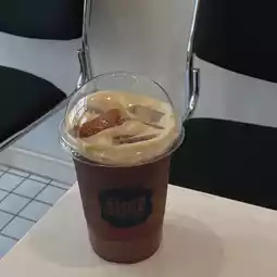 ChooChoo Cafebar📍Korat. Both the taste and the price are good. We ordered a peach Americano. They also gave us peach pulp. The coffee and peach were really good. If you like strong coffee, this is the best. My friend ordered a coconut coffee and it tasted really good. It was very fragrant with coconut. The price was good at 55฿ per cup. If you are in Korat, I highly recommend it.
