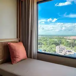 A newly opened hotel, Centara brand, which is the first to open in the city. With a high-rise hotel with a city view that meets all relaxation needs, both comfortable rooms, a restaurant that provides all-day dining as All Day Dining.