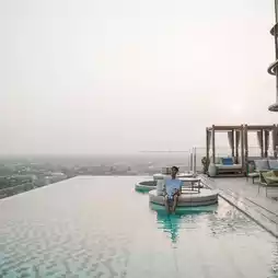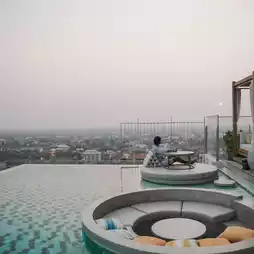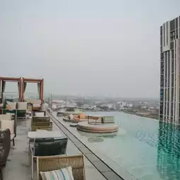 On the rooftop, right next to the swimming pool, because the atmosphere is great.