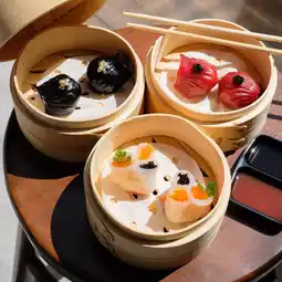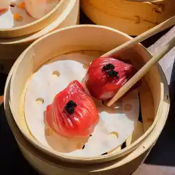 🥢 Premium Dim Sum: We ordered three items in this set - pink gold har gow, black gold shrimp har gow, and three-color har gow.