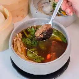 There are over 100 delicious dishes to choose from, including freshly steamed dim sum, Phuket dry rice porridge, crispy shrimp rice rolls, Bak Kut Teh, lava buns, truffle mushroom buns, fried taro, grilled patongko with two types of custard (egg custard and pandan custard), and ending with strong Thai tea and iced black tea to fulfill your energy. This is just a small part; there are many more dishes waiting for you! 🥳