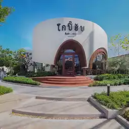 This is the largest branch of 'KopiHub' with an area of over 700 sq.m., featuring stunning architecture designed by a national architect, incorporating the essence of Korat in every detail, such as using the shape of silk bundles in the building design and incorporating weaving patterns in the interior decoration. Bamboo baskets and wooden materials are also used to add a playful touch in the KopiHub style.