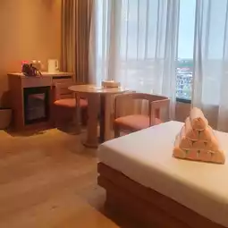 The rooms are clean, spacious, beautifully decorated, and fully equipped with amenities. It is perfect for a relaxing day. The TV can also watch YouTube. There is also a chill-out area by the swimming pool on the hotel’s rooftop, offering a beautiful view of Korat.