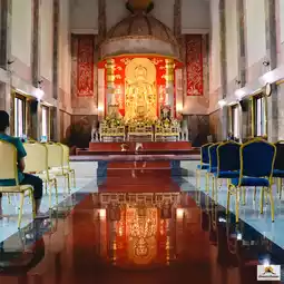 The ordination hall is shaped like a junk, made of marble, towering and majestic. When you enter the ordination hall, you will see the intricate lacquerwork on the clear glass.