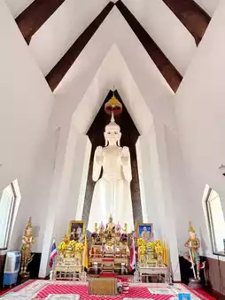 Wat Sala Loi in Korat is a very beautiful temple with a unique white ordination hall. Inside the ordination hall is a beautiful white Buddha image. Paying respects is a true sense of peace and purity of Buddhism.