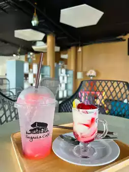 Sugavia Cafe is a super chill cafe in Khao Yai, perfect for both coffee lovers and nature lovers. Decorated in warm, modern tones, it feels like sipping coffee at a friend's house, but with a pleasant view of the surrounding mountains and trees. The menu offers a wide variety of beverages, including rich, aromatic coffee, delicate matcha green tea, and refreshing fruit juices. The homemade desserts are also worth a try, especially the soft cakes that go perfectly with the coffee. There are plenty of photo spots, both inside and outside, with clear views of Khao Yai. It's a great place to chill, work, or unwind on a relaxing day. The place is not too busy, and it offers a wonderful sense of privacy.