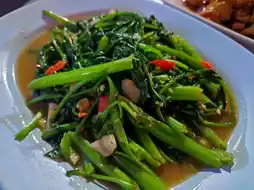 They include fish, shrimp, crab, shellfish, squid, duck, and frog. Popular dishes to go with porridge include pork with ba-teng, fried gourami, Chinese sausage salad, dried shrimp salad, minced pork with preserved bean paste, stir-fried bitter melon with egg, and stir-fried pickled radish with egg. There are also many other dishes to choose from. Delicious food at affordable prices.
