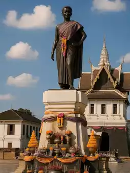 Start your trip by paying respects at the **Thao Suranari (Ya Mo) Monument** in the heart of Korat, a center of Thai faith steeped in heroic tales. The surrounding area is bustling with shops and a constant stream of people seeking blessings.