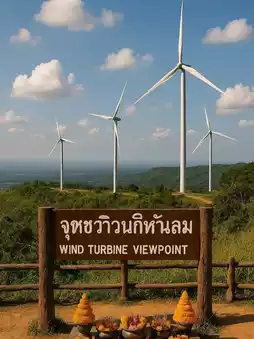 Continue your journey by climbing the mountain to experience the strong winds at **Khao Yai Thiang Windmill Viewpoint**. Enjoy panoramic views of the Isan forest and the giant windmills that spin in the wind all day long, a refreshing and cool photo spot.