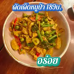 🥬Recommended dish: Ranjuan Curry, 179 baht. I highly recommend this dish, which was so delicious, we ordered another set. Other dishes are delicious. Squid in black ink (199 baht), morning glory with egg (149 baht), spicy wild boar salad (149 baht), and spicy stir-fried wild boar (189 baht). A favorite among men is the spicy glass noodle seafood salad (189 baht). The Isaan sausage (119 baht) is rich and flavorful. Finally, the delicious Luang Prabang papaya salad (79 baht). 🌶️🌶️🌶️