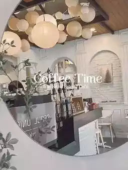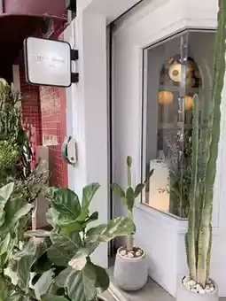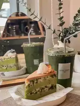 This cute, white-toned cafe contrasts with the greenery of the trees. While not very large, the interior is warmly decorated and perfectly arranged. There are only a few tables, perfect for a coffee break or a small gathering with friends. There are plenty of photo spots to take with the shop and the trees. The storefront stands out. They offer a wide selection of drinks and desserts, all delicious. We tried the coconut matcha, which was delicious. The lod chong cake wasn't too sweet. Overall, it was a good choice. If you're looking for a coffee shop to relax or work, I highly recommend this one. The prices are also reasonable.
