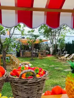Outdoor zone behind the shop: It is decorated according to each month's festival, meaning you can come every month and never get bored. There is an apple orchard🍎 and an orange orchard🍊 surrounded by green trees throughout the shop🌿
