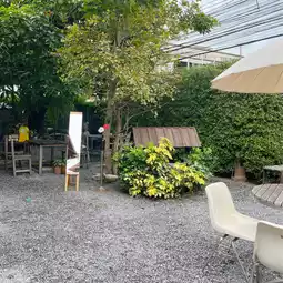 ⌇ This cafe is a renovated old house with both indoor and outdoor seating. The atmosphere is shady and relaxing.