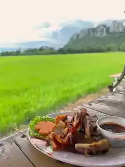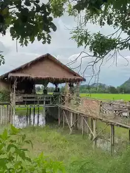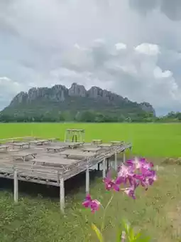 Between the Mountains Cafe is a small hut-like cafe nestled in the middle of a rice field, nestled between Khao No and offering views on both sides of Khao No.