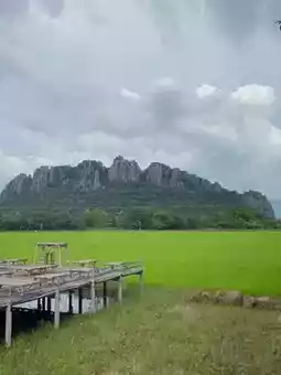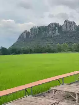 Come to a cafe in the middle of a rice field with a view of Khao No in Nakhon Sawan Province. Those visiting during this time will be treated to breathtaking views of the lush green rice fields.