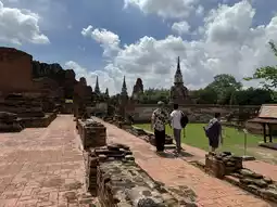 The temple is renowned for its striking "Buddha Head in Tree Roots"—a Buddha head that has been gently embraced by the roots of a fig tree over centuries, creating a unique blend of nature and religious heritage. This iconic image has become a symbol of Ayutthaya. The temple complex features a mix of Khmer-style prangs and Sri Lankan-style bell-shaped stupas. Although much of it was left in ruins after the Burmese invasion in 1767, the remaining brick towers, Buddha statues, and layout still reflect its former grandeur.
