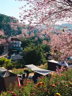 This is one of the most beautiful tent sites in Rong Kla Village. It is located on a hill and offers a beautiful view of the Pink Village. Inside the tent site, there is a beautiful Himalayan cherry tree as a highlight. There are also restrooms, shops and a beautiful photo spot in Rong Kla Village. In the cold season, you can see frost in the morning.