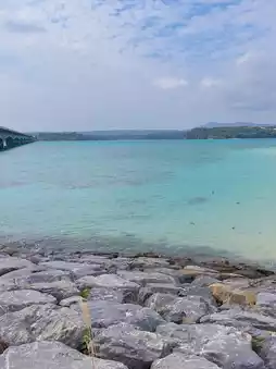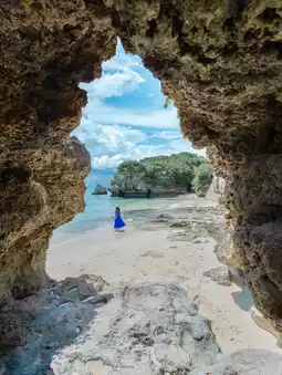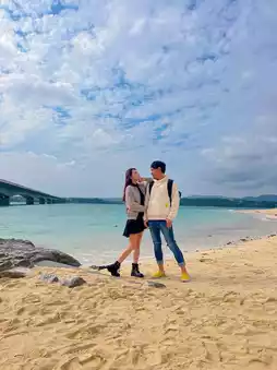 In summer, you can enjoy swimming at Kouri Island Beach 🌴