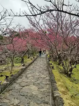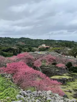 In spring, the cherry blossoms bloom in full bloom, making it a popular spot to enjoy early cherry blossom viewing in Okinawa. 🌸
