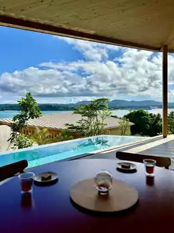 Designed in harmony with nature by architect Tsune Nagasaka.The Kouri Bridge and the blue sea are right in front of you, and the sound of the wind and waves reaches your ears.A luxury villa where nature and architecture blend together.I had a superb holiday, taking many dips in the heated pool.Next time I want to stay at YAWN YARD Kouri Island (Sea)Details in the feed🔜