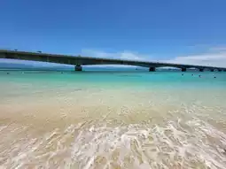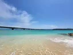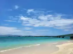 Kouri Beach in Okinawa is one of the most popular attractions in the northern region. It is about a 30-minute drive from the Churaumi Aquarium in Motobu Town. Along the way, you'll pass through Yagaji Island and the spectacular Kouri Bridge. Driving across the bridge, you'll be surrounded by a breathtaking view of the endless blue sea stretching to the horizon. Upon arriving at Kouri Beach, you'll be greeted by pristine, transparent waters reflecting the blue sky, and the fine, milky-white sand shimmering beneath the surface. The scenery is pure and flawless, offering a tranquil escape from the hustle and bustle of daily life.