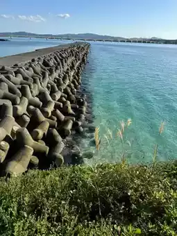 Behind it lies Okinawa's purest blue sea, sunlight glittering on its surface. When the sea breeze brushes against the stone monument, one senses a place where heaven and earth meet. Whether seeking peace or simply a way of life, people gently place their wishes upon the sea and the gods.