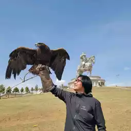 Mongolia ✨️Genghis Khan horseback riding statue✨️ In front of this statue, there is a Mongolian holding an eagle. If you ask this Mongolian, you can take a picture with the eagle for a reasonable fee. This eagle can be lifted with gloves. Although the eagle is quite heavy, it is possible to take a picture with it without much danger because the keeper raised it well. Please note that young children cannot participate in this activity.