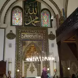 The vast interior is decorated with 20 domes, creating a grand and solemn atmosphere. In addition, the wooden pulpit and the detailed calligraphy decorations attract visitors.