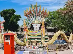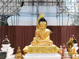 🙏 According to legend, the Lord Buddha traveled to the Isan region and stayed on a hillside. He gave the relics to 5 Arahants to enshrine in Laos and the current Isan region. One of the selected locations was an area with a large, old tree trunk. The 5 monks saw it as a sign that the tree trunk was suitable for enshrining the relics, so they built a chedi to cover the tree trunk and named it “Phra That Kham Kaen.”