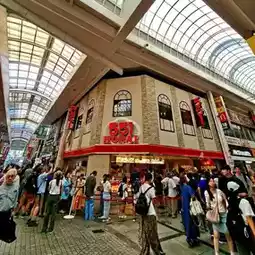 Namba is a busy entertainment district with frequent foot traffic. From the bustling bus terminal, Namba Park is a shopping mall with numerous shops and is connected to Dotonbori and Shinsaibashi, offering a selection of famous and affordable restaurants.