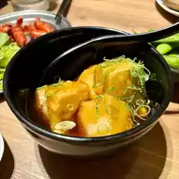 A generous amount of Japanese-style dashi sauce is poured over fluffy deep-fried dashi tofu. The strong flavor makes it a great snack to go with alcohol.