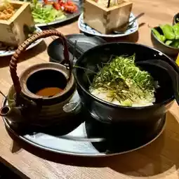 The crunchy texture of the deep-fried cartilage is addictive. It's a photogenic dish overflowing from the masu.