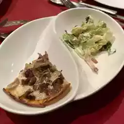 The Caesar salad is a perfect combination of the savory smoked bacon and creamy dressing. The pizza is a perfect balance of juicy beef and fragrant mushroom flavors, with a chewy dough.