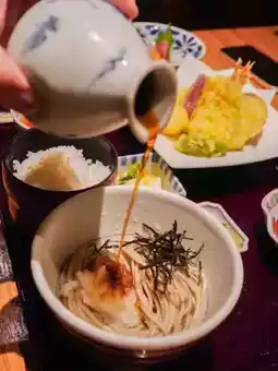 The noodles are ground in-house using a stone mill, and they also serve soba shabu-shabu.