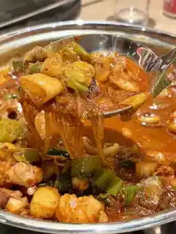 Kemichip’s signature dish, "Nakgopsae," is a local specialty born in Busan, Korea. It’s a hot pot dish stir-fried with long-arm octopus, offal, and shrimp in a spicy sauce, characterized by its sweet and spicy flavor. The rich umami and savory aroma make it an addictive dish.